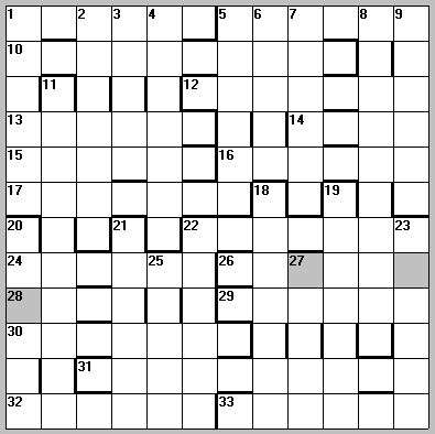 One letter must be omitted from the answer to each across clue, one letter must be added, at any point but never unchecked, to the answer to each down clue. Definitions in clues refer to the untreated words (lengths indicated by numbers in brackets); subsidiary indications refer to the treated forms entered in the diagram. In numerical order of clues the omitted letters (across) followed by the added letters (down) complete the title of the puzzle. Clues are presented in symmetrical pairs and the clues in each pair are separated by one redundant word, the initial letters of these words, in numerical order, give words which are associated with the Theme of the puzzle as are the letters entered in the shaded squares when read from left to right. Chambers Dictionary (1998) is recommended.