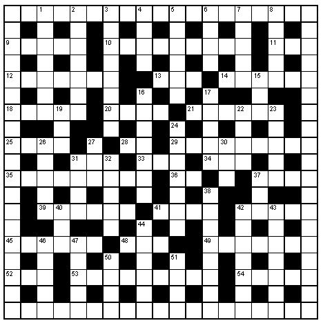 | Across 9 Introductions to Vardon exhibition held by golfer for little people (5) 10 Leigh lads are confused (9) 11 Reject eccentric with a short raincoat (3) 12 Remove helmet and smash tree (7) 13 Shorthand, too! (3) 14 Hebridean medley lacking air (6) 18 "Hell!" exclaimed head of religious institution (5) 20 Neat, the way that the box enfolds its contents (4) 21 Office worker the French followed (6) 25 Senior officer has tungsten inside hood (4) 28 see 36 29 Slow music for a sloven to change tie to (9) 31 Interrupted beat led to spasm (3) 33 Sweep has nothing before annual return (3) 34 Found inside Wauchope local (3) 35,42 Try and take some fluid (9,5) 36,28 Idiot going west gives northern palm (4) 36,48 Olden constituents of waterproof cloth (5) 37 No friend gives a gemstone (4) 39 Islet by El Salvador (6) 41 Clumsy fellow starts sweeping with a broom (4) 42 see 35 45 Noble actress took a king to soak (6) 48 see 36 49 Bounder put ecstasy in river (7) 52 Spike list mentioned by East Ender (3) 53 Reorganise post. Nicer than one occupied by 10, 34, 35 42Ac and 16Dn, perhaps (9) 54 Climbers one contests (5)