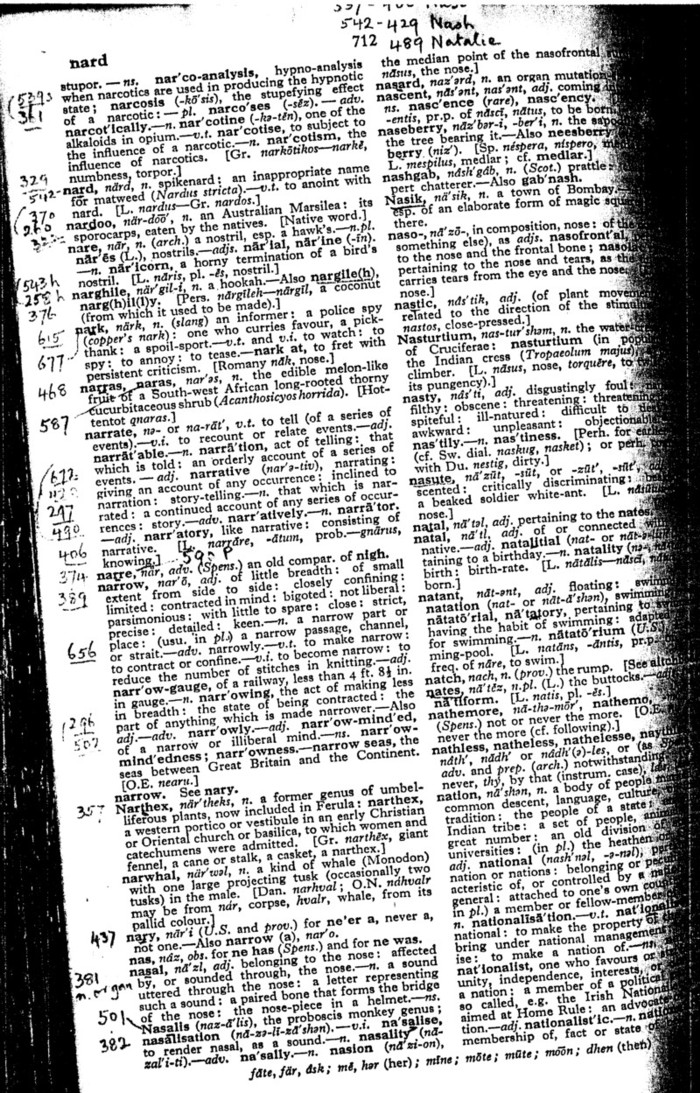 A typical page shows underlined words and numbers. Do the numbers refer to the puzzles where he used these words?